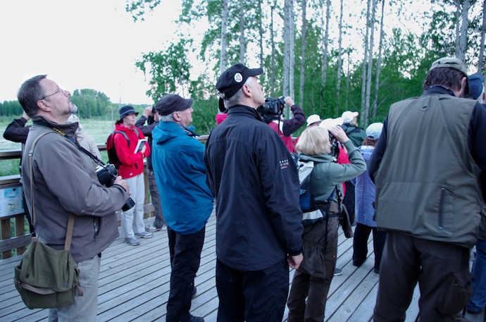 Kasinniemen tornin lähistöllä joukkoa ilahdutti haapojen lehvistössä pyörinyt kuhankeittäjäpari. Linnun käheä varoitusääni tuli tutuksi Timo Tikan opastuksella. Kuultavaa ja nähtävää riitti ja havaittujen lajien määrä lähestyi neljääkymmentä. Kesäöisen Siikalahden tunnelma äänimaailmoineen piti retkeläisiä otteessaan yli puolenyön. Viimeiset lähtivät aamuyöllä Kullinsuon kautta kotia kohti – heinäkurppaa ei siellä kuultu.